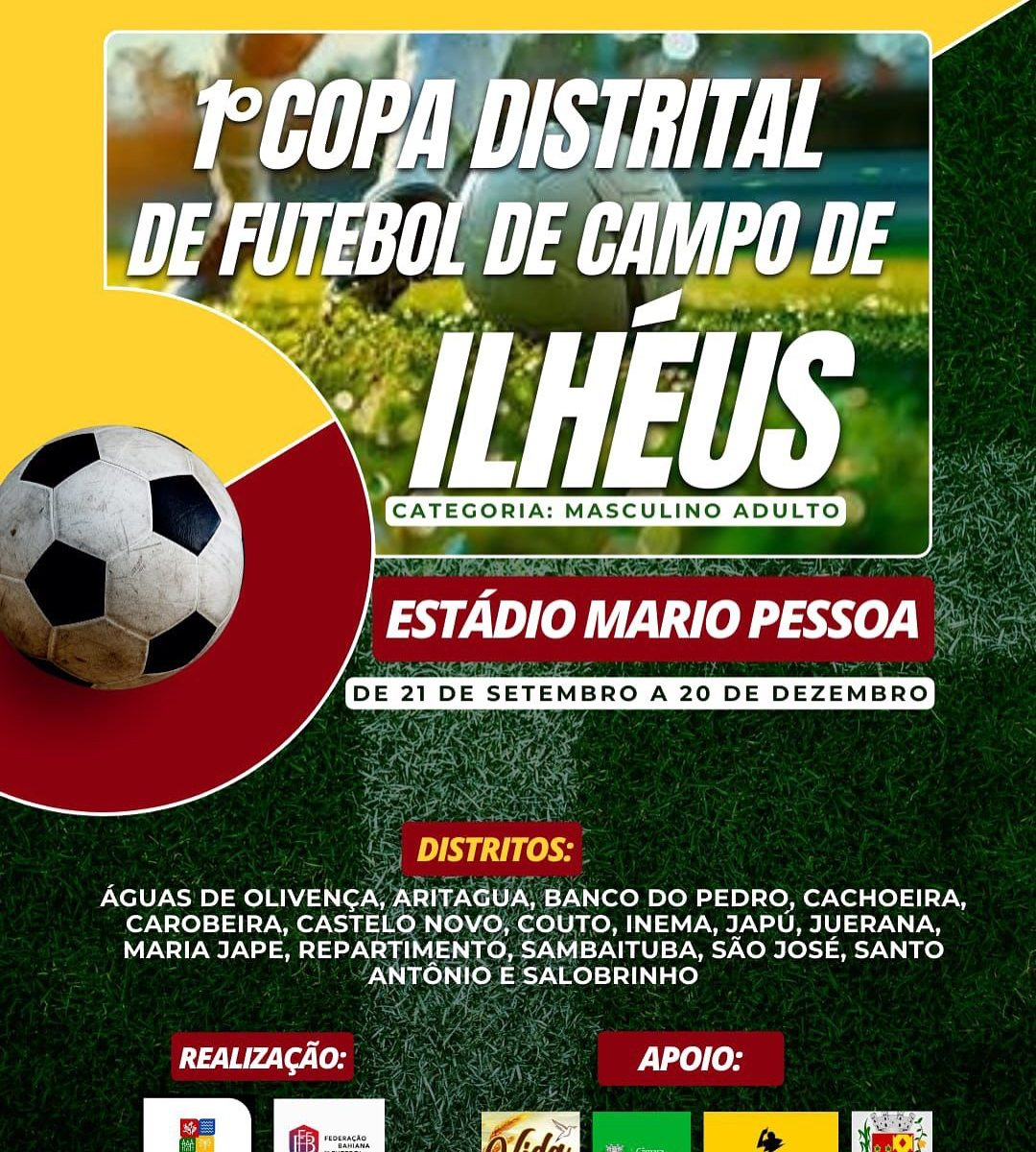 Esportes Prefeitura de Ilhéus lança a 1ª Copa Distrital de Futebol de Campo admin, 7 meses ago 0 2 min read Competição acontece de 21 de setembro a 20 de dezembro, com 16 distritos participantes e apoio da Federação Bahiana de...